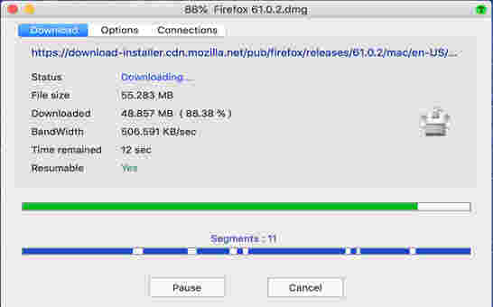 具有暂停/恢复功能,可以恢复崩溃的下载。