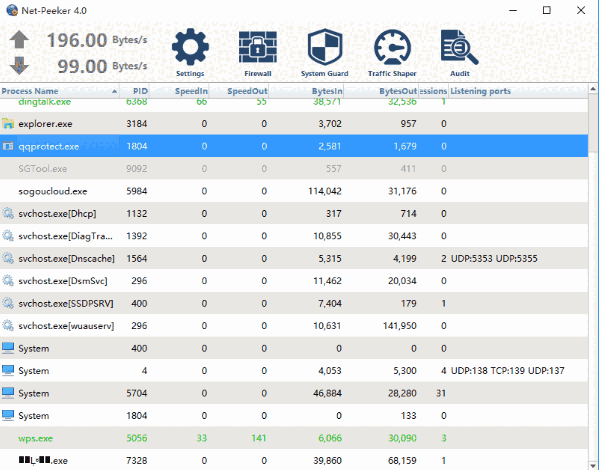 支持对整台计算机的软件监控,只要你启动软件就可以在NetPeeker破解版查看速度