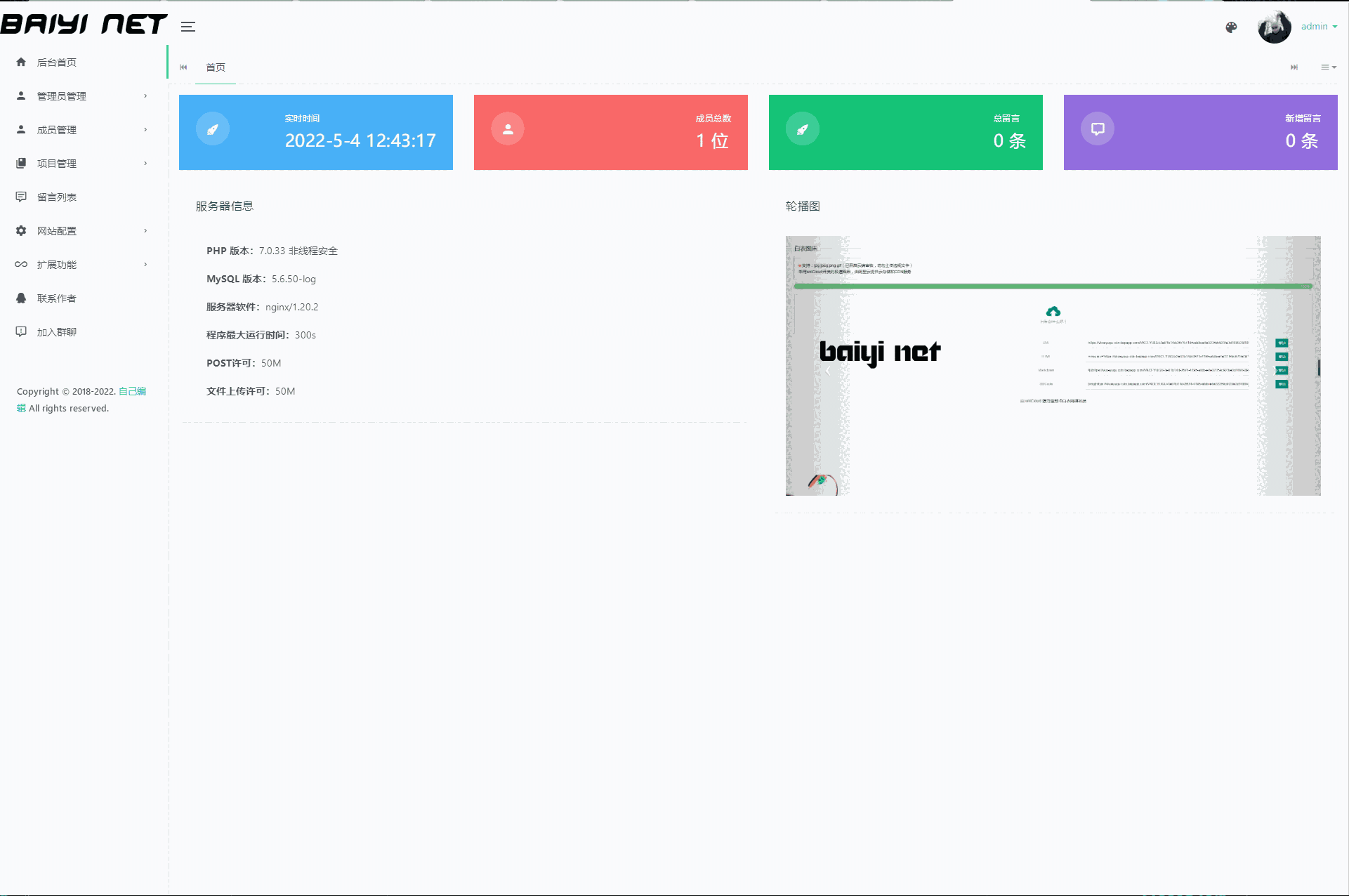 该项目适用于团队/工作室等类型,全站由layui强力驱动,及光年后台模板的使用