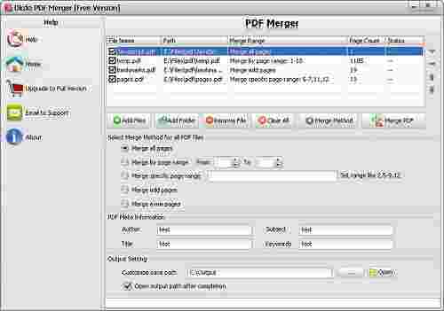 Okdo PDF Merger是一款专业的PDF文件的工具软件。使用者可以通过软件对PDF文件进行拆分,可以分成多个PDF文件,也可以对多个PDF文件进行合并,使用者还可以根据需求只合并奇数页或偶数页,特别方便快捷。整体是一款非常不错的PDF相关的工具。