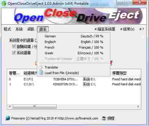 OpenCloseDriveEject是一款功能全面的驱动器弹出关闭软件,支持关闭DVD-, CD,蓝光驱动器弹出USB和外部SSD, SD等驱动,能够快速访问必要的驱动器和系统盘。有喜欢的小伙伴快来下载吧!