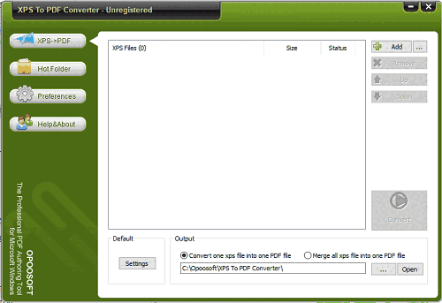 Opoosoft XPS To PDF Converter是一款专业的xps文件的转换工具软件。使用者可以通过软件将xps文件进行转换,支持转换为PDF格式的文档。使用者也可以将多个xps文件进行合并转换,也支持批量转换,提高多文件转换的效率。