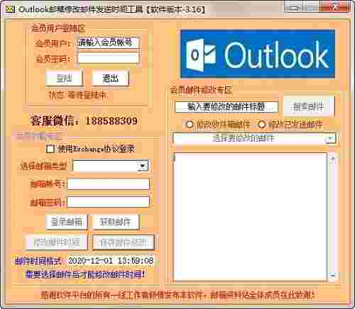Outlook邮箱修改邮件发送时间工具绿色版采用登录页已发出或收到的邮件时间修改,操作如同登录邮箱,直观。