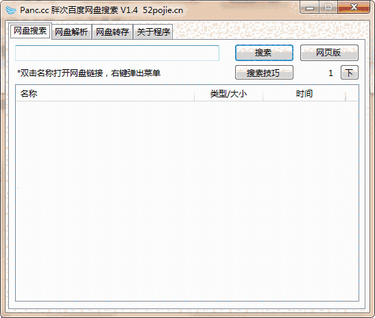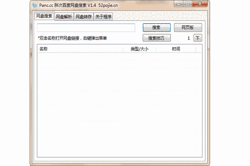 Panc胖次百度网盘搜索工具是一款专业的资源搜索的软件工具,软件内置了网盘搜索工具、网盘解析工具、网盘转存工具。非常方便快捷,软件界面简约,布局直观清晰。操作简单,容易上手,是一款十分实用的工具。