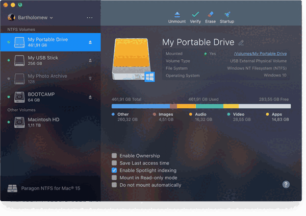 Paragon NTFS Mac版是一款Mac平台的NTFS文件难题,软件功能强大且实用,兼容所有版本的Mac OS X和32/64位内核模式,完全可以在Mac OS X中读写、修改、访问Windows NTFS硬盘、u盘等外接设备的文件,有效解决Mac无法识别Windows NTFS格式磁盘的问题,有需要的赶快下载使用吧!