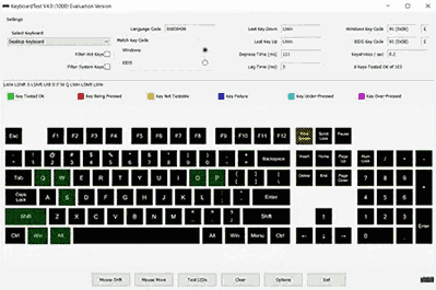3、保存测试结果至本地,支持多键盘切换测试,可自定义测试时长和灵敏度参数。