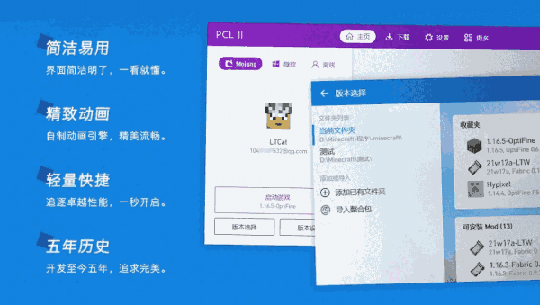 PCL2启动器是一款非常有用的游戏辅助工具,软件操作非常简单,界面简洁,提供丰富的游戏MOD和光影效果,可自定义游戏皮肤、模组、滤镜等功能,还提供了丰富的功能和个性化选项,包括自定义布局、快速启动应用程序、智能搜索等,为玩家带来高品质的游戏体验,感兴趣的小伙伴快来下载使用吧!