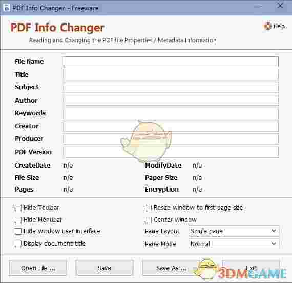 《PDF文件信息修改工具 4.00》是一款费的实用程序,这款软件用于阅读和更改PDF文件属性/元数据信息,包括作者,标题,主题等,软件内拥有非常丰富的功能,操作非常简单,是一款非常不错的软件,有需要的小伙伴快来下载叭!