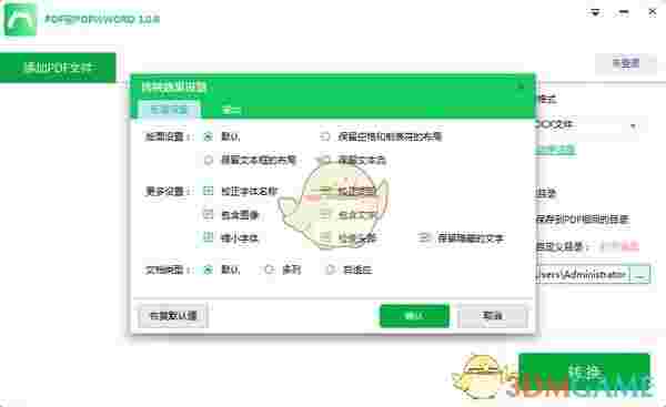 更多设置:校正字体名称、校正间距、包含图像、包含文字、缩小字体、检查头部、保留隐藏的文字