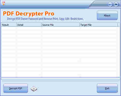 PDF Decrypter Pro是一款专业的PDF文件解密的软件工具,软件可以快速破解去除加密的PDF,也可以浏览加密过的PDF文件。十分方便快捷,界面简约,布局直观清晰,操作简单,极易上手,是一款不可多得的利器。