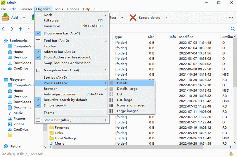 PeaZip的用户界面旨在提供帮助给用户:编辑,保存和恢复压缩布局(输入文件和文件夹的列表),以加快压缩和备份操作的定义;保工作的定义,以纯文本,将在脚本或二手学习的目的;在每次行动后有详细的工作日志。