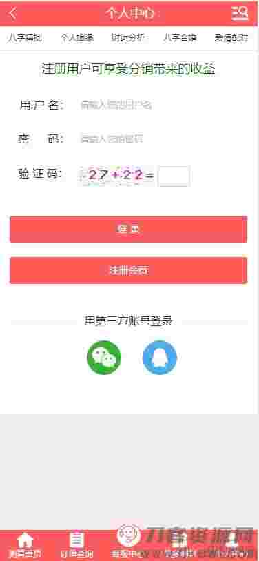 1.微信登陆,支持调起QQ一键登陆,个人中心可以查看分销提成,以及下线推广订单列表等…
