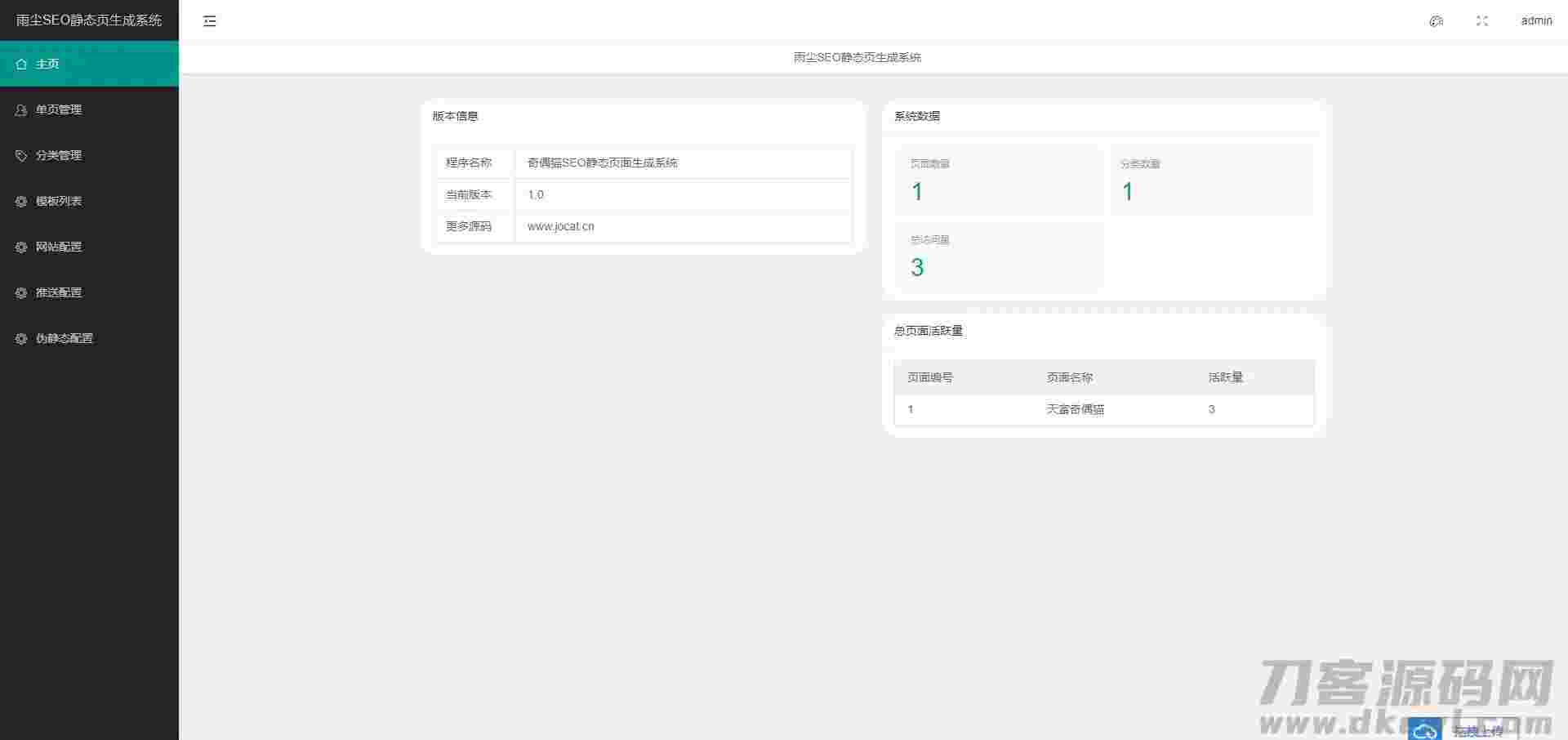 一款随机静态页面生成系统,一秒钟可生成上千条单页面,批量生成单页用来做SEO是非常不错的源码。雨尘SEO静态页面生成系统源码v1.3版本,支持文章采集,功能,多模板选择批量生成单页,本次更新增了百度自动推送和网站地图sitemap功能。