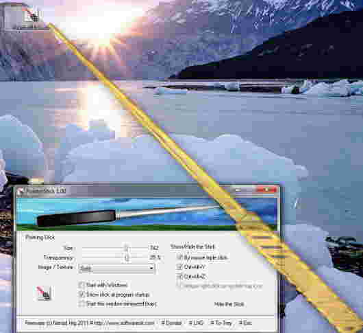 PointerStick64位版是一款专业的虚拟指点棒的软件工具,软件可以调整指针杆的尺寸、纹理、透明度等。比较适合老师教学上课使用。十分方便快捷,界面简约,布局直观清晰,操作简单,极易上手,是一款不可多得的利器。
