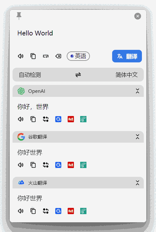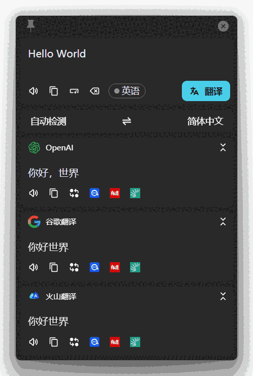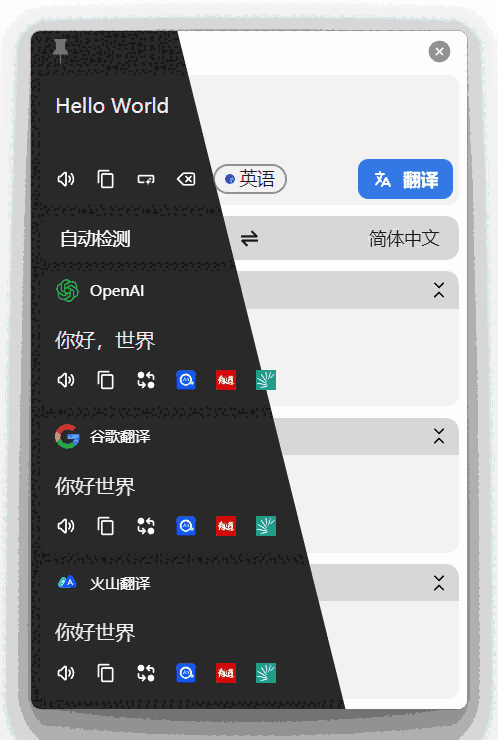 在任意翻译面板上点击左上角图标启动剪切板监听默认,复制文字即可完成翻译按下截图 OCR