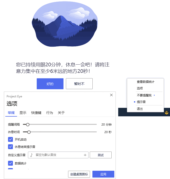 ProjectEye是一款专业的用眼休息提醒的工具软件,软件会记录使用电脑的时间,会智能提醒使用者注意休息保护眼睛,十分方便快捷,界面简约,布局直观清晰,操作简单,极易上手,是一款不可多得的利器。