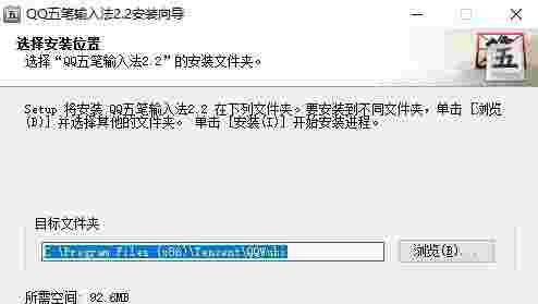 三、在接下来的界面中可以点击【浏览】来自定义软件的安装位置,在打开的弹框中选择给QQ五笔输入法选择一个合适的位置点击确定即可。(软件默认是安装在C盘中,为了不影响软件的使用及电脑运行速度,小编建议大家选择自定义安装方式;)。然后点击”安装“继续安装;