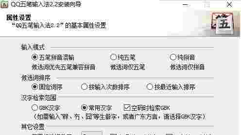 五、在安装过程中可以对QQ五笔输入的一些基本属性进行设置,如下图所示,在这里可以修改自己的使用习惯,当然也可以以默认设置继续安装,安装完成在设置也是可以的。