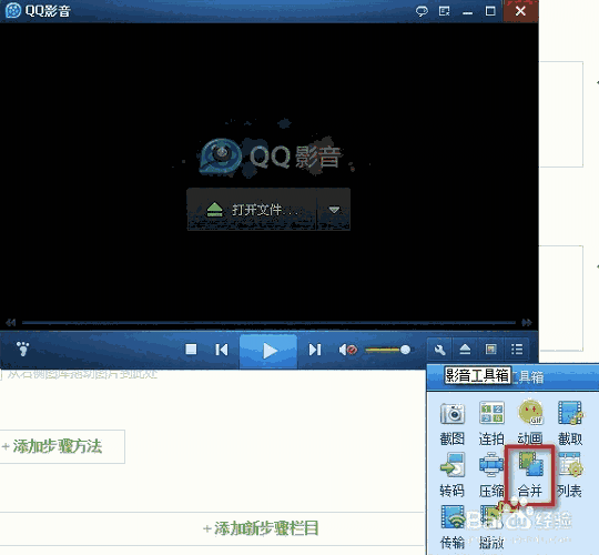 1、打开QQ影音播放器之后,点击工具,会跳出一个菜单,在里面找到“压缩 ”。