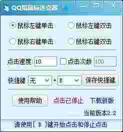 QQ猎鼠标连点器是一款专业的鼠标辅助的软件工具,软件支持四种连点模式包括鼠标左键单击和双击、鼠标右键单击和双击。十分方便快捷,界面简约,布局直观清晰,操作简单,极易上手,是一款不可多得的利器。
