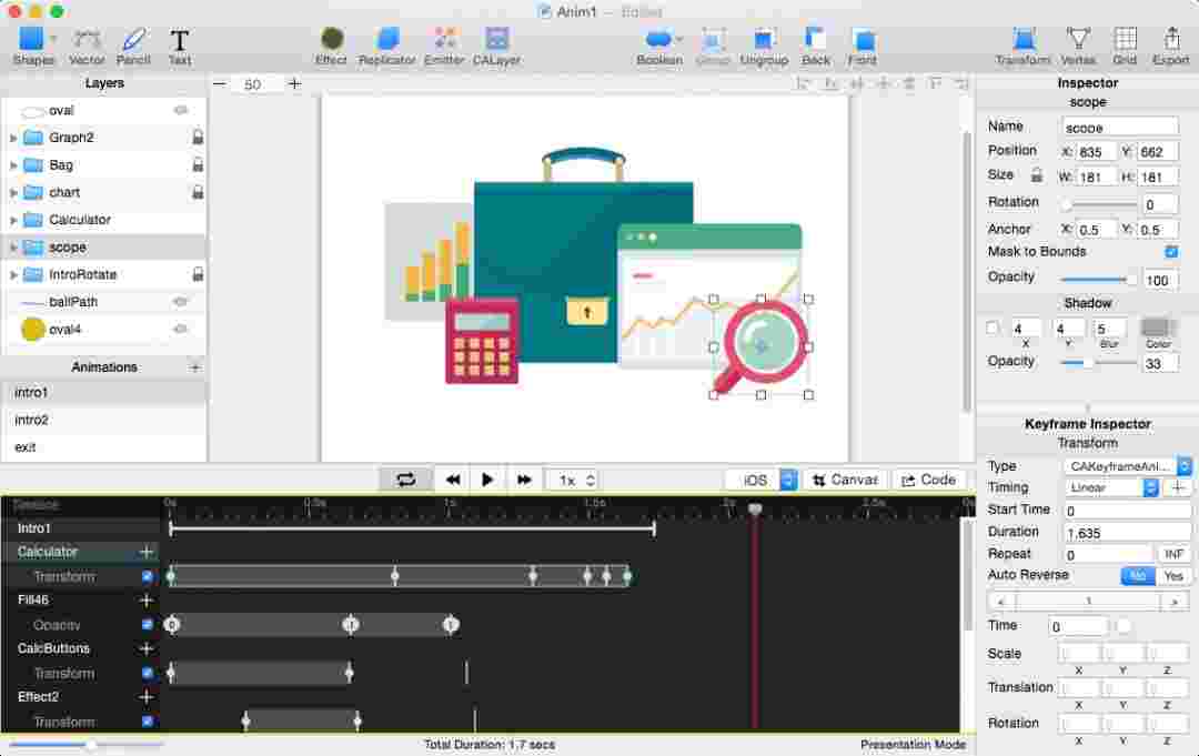 4、使用提供的图形来丰富动画,使用线性计时功能来简化、放松或创建自定义计时功能。