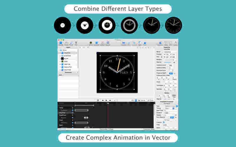 2、轻松创建关键帧动画,并使用时间轴面板来修改和调整它们。