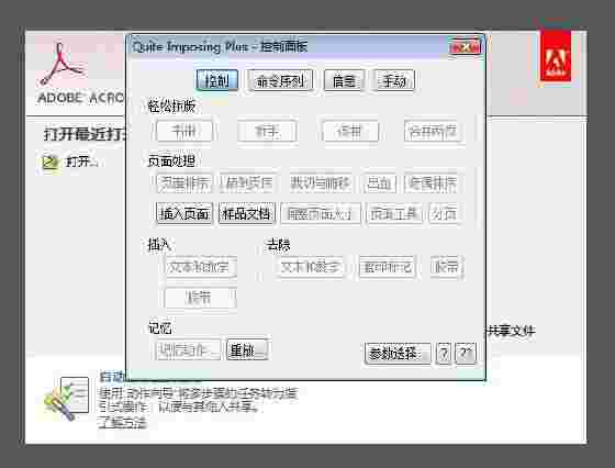 Adobe Acrobat中的排版工具对于打印或者手册印刷的拼版是不够专业的,利用quite imposing plus就可以弥补软件的缺陷