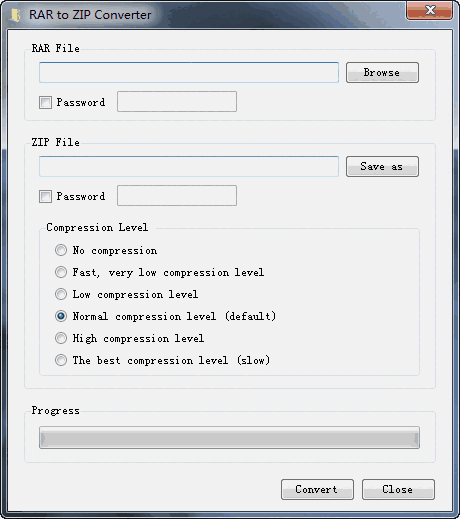 RAR to ZIP Converter是一款专业的rar文件转换zip格式的工具软件,软件还可以转换TAR,GZ,BIZ2,GZIP,CAB等不同文件格式,十分方便快捷,界面简约,布局直观清晰,操作简单,极易上手,是一款不可多得的利器。