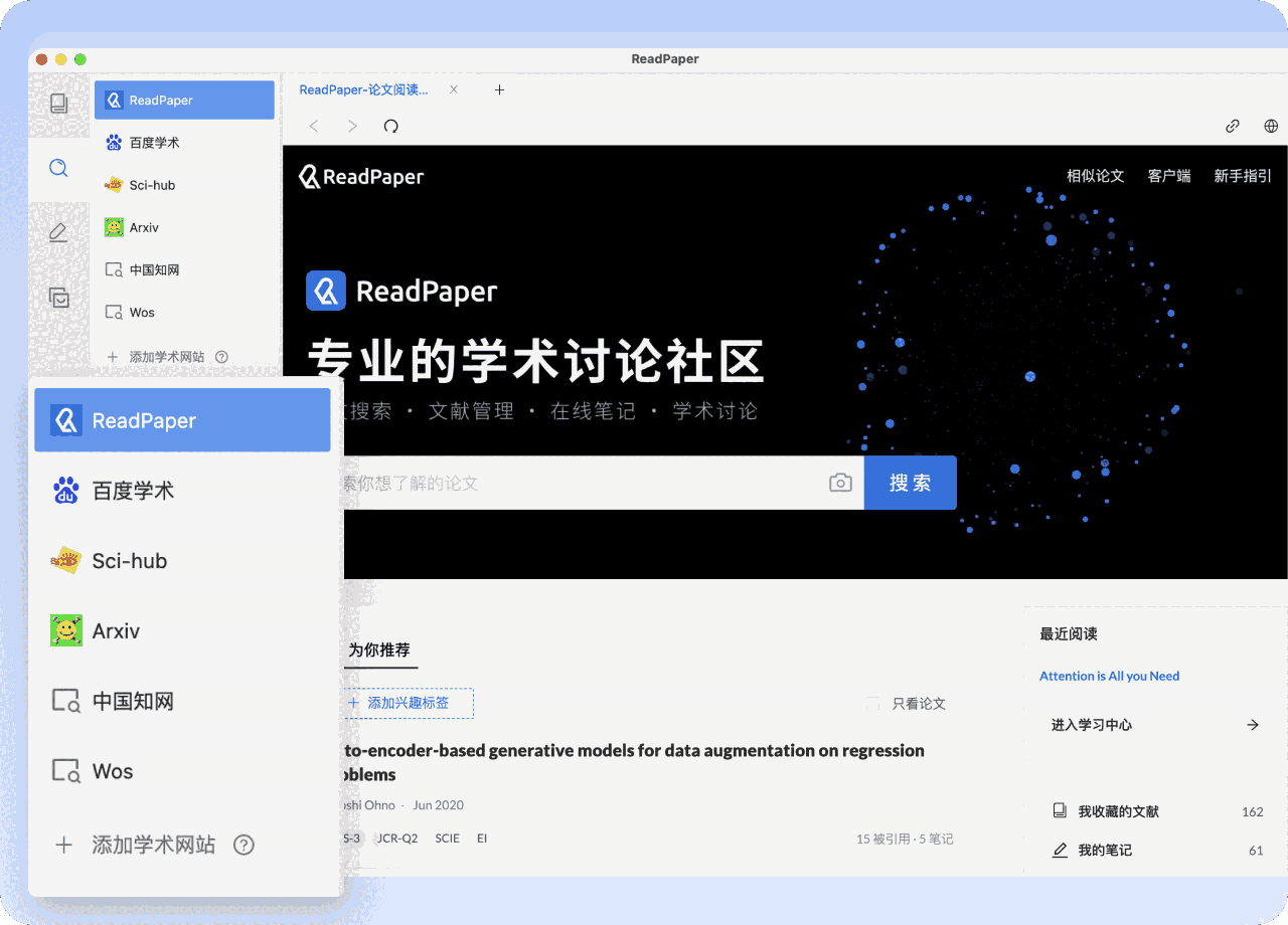 ReadPaper,一款专业的论文查询阅读编辑工具,软件加入AI引擎集搜索、查询、管理、翻译于一体的AI科研神器,让看论文变得轻松,软件支持多个领域的专业术语翻译,更加灵活变通!欢迎下载使用!
