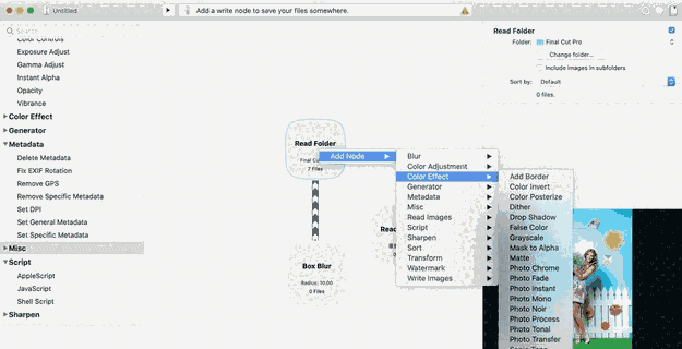 使用AppleScript节点对图像进行排序或执行操作。