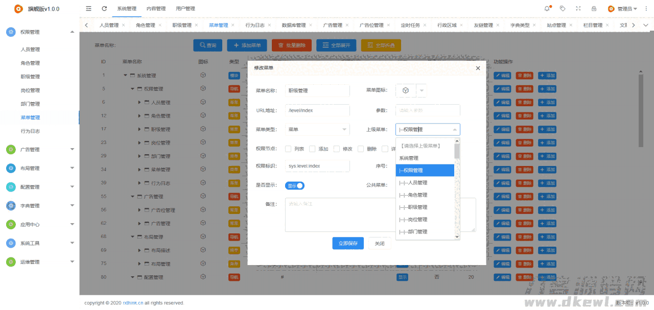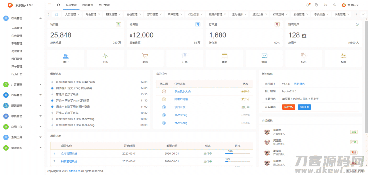 RXThinkCMF_TP6_PRO旗舰版是一个基于thinkphp6 + layui2.5.6开发权限(RBAC)及内容管理框架,框架中集成了权限管理、模块管理、插件管理、钩子管理、数据库管理、富文本编辑器(已集成ueditor,kindeditor),后台支持多主题切换、布局管理、广告管理、配置管理、字典管理、切图管理、CMS内容管理等常用功能模块,以方便开发者快速构建自己的应用。RXThinkCMF_TP6_PRO框架专注于为中小企业提供最佳的行业基础后台框架解决方案,执行效率、扩展性、稳定性值得信赖,操作体验流畅,使用非常优化,欢迎大家使用及进行二次开发。