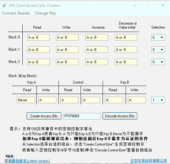 S50 Card Access bits Creator正式版支持S50及其兼容卡的密钥控制字算法
