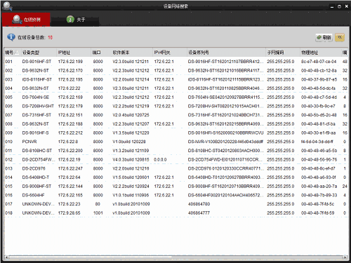 可显示相关设备的具体信息,包括设备类型、激活状态、IP地址、端口、IPv4网关、HTTP端口等。