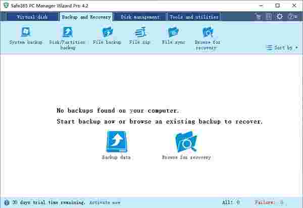10/8.1/8/7/Vista/XP应用程序。备份数据后,硬盘驱动器崩溃或意外删除几乎不会那么痛苦。通过内置的备份和恢复功能,您可以在几分钟内将整个Windows系统备份恢复到原始或新位置,备份整个磁盘或卷、备份特定文件、文件夹或网络共享文件。