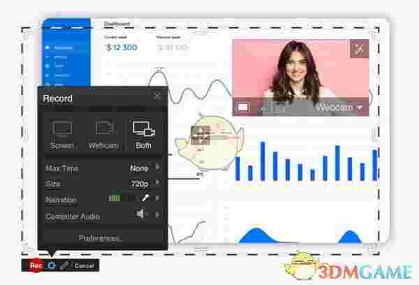 使用我们免费且易于使用的屏幕录像机,您可以捕获屏幕上的任何区域,并可以选择从麦克风添加旁白和从网络摄像头添加视频
