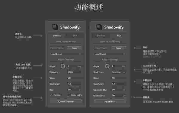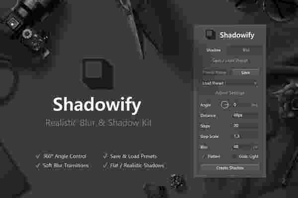 Shadowify是一款专业的ps投影的插件工具,软件为ps软件添加一个更为真实、效果好的投影插件,插件十分方便快捷,界面简约,布局直观清晰,操作简单,极易上手,是一款不可多得的利器。