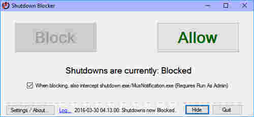 Shutdown Blocker是一款专业的阻止电脑关机的工具软件,适用于使用的场景如电脑设置过定时关机,就可以直接终止电脑关机,十分方便快捷,界面简约,布局直观清晰,操作简单,极易上手,是一款不可多得的利器。