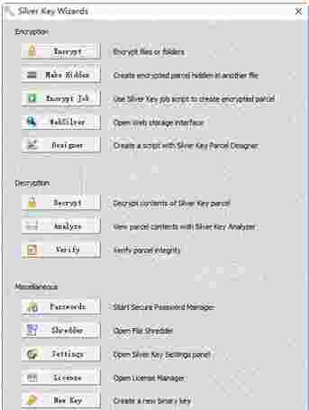 Silver Key Standard是一款专业的文件加密的工具软件。使用者可以通过软件对任何类型的文件进行加密保护,主要用途在于传输文件时为文件进行加密,以此达到数据传输安全的目的。软件的功能布局也很合理直观,使用起来非常方便。