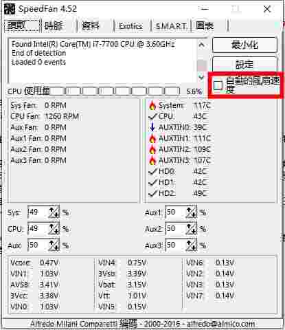 SpeedFan是一个在国外流行的硬件监控工具,SpeedFan可以以魔方图显示处理器温度、电压主频、内存占用率,硬盘的温度和健康,风扇的转速,电池电量,开机时间等系统信息。SpeedFan不可忽视的独有功能是能够依据系统的温度来改变风扇的速度,喜欢该软件此版本的可以下载体验哦!