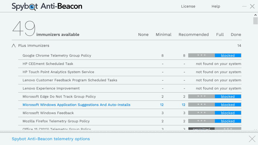 操作系统这是Spybot Anti-Beacon的核心类别,包括所有阻止Windows遥测呼叫的免疫器。