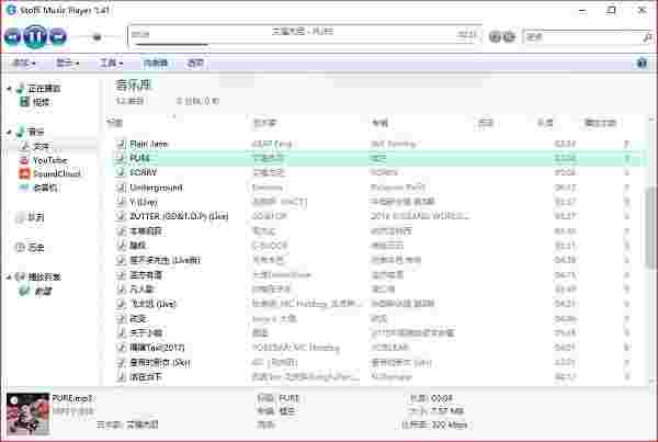 而音乐的排列的形式和Windows 10的库一样,如果你将这款软件完全放大的话,你会发现它真的很Windows10的文件管理器真的很像啊!虽然Stoffi Music Player可以显示很多的内容,可惜的是,它对中文编码支持的不够完美,但不代表它不支持中文,而且它还支持简体中文,这个让我怀疑这个工具是国人开发的,因为进入网站首页的时候,在标题中,你会发现中文字样的音乐播放器。