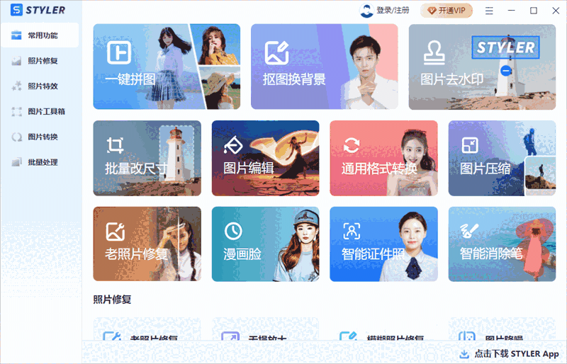 Styler免费版是一款非常实用的图片处理工具,软件功能强大,提供了超级多的各式各样的滤镜素材,拥有非常的出色的智能抠图、一键拼图、图片修复、图片美化等等功能,支持给png、jpg、bmp等百余种图片进行格式转换处理,满足多样化图片处理需求,欢迎有需要的小伙伴赶快下载体验吧!