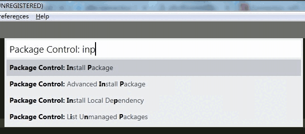 1、打开Sublime Text软件点击软件顶部的【preferences】,在弹出的选项中点击【Package Control】选项,输入inp,找到【install package】选项。