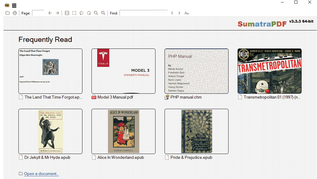 Sumatra PDF 的启动是异常迅速,几乎没有启动过程,程序界面直接呈现。