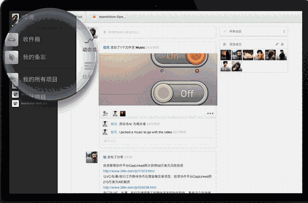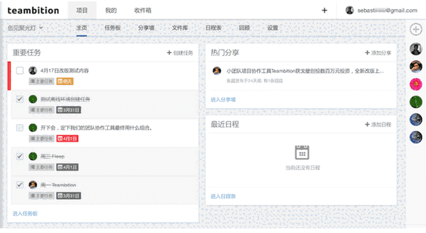 在任务板上,可以直观的和大家一起推动任务前进。对于每一项任务,你都可以分解子任务,携带附件,设定期限,随时讨论。