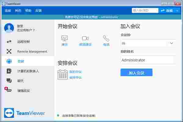 这里最值得称赞的是,TeamViewer可在不安装的情况下运行,只需在安装界面选择“运行”即可,稍等片刻也会出现主界面,关闭后不会留下任何痕迹。此模式唯一的限制就是不能登陆TeamViewer帐号,只能通过电脑ID进行远程控制或会议。不过已可作应急之用,绰绰有余。