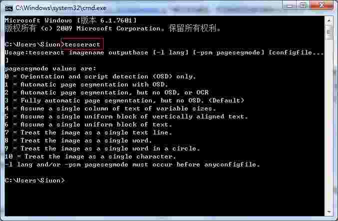 这里使用的版本为Tesseract3.02。直接点击上面的链接,下载windows下的安装文件tesseract-ocr-setup-3.02.02.exe。安装tesseract-ocr-setup-3.02.02.exe。安装成功后会在相应磁盘上生成一个Tesseract-OCR目录。如图我是安装到了如下位置安装完成打开命令行,输入tesseract,展现如下图说明已经安装成功。