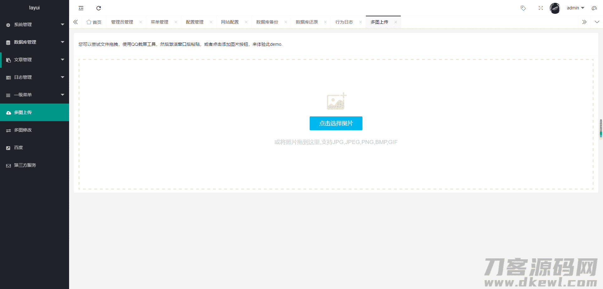 集成webuploader单图多图上传七牛云、又拍云、本地,数据库管理,toastr通知,smtp邮件,极光推送,云之讯短信,阿里大于短信,viewer图片查看器,菜单管理,角色管理,wangeditor编辑器,百度编辑器,音频上传,视频上传七牛转码,视频分片上传到本地,数据导出Excel,地区三级联动等