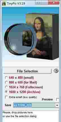 重新设置尺寸的图像可以在同一个文件夹内采用一个新的文件名进行保存,或者甚至可以放置到一个以重新设置尺寸的图像的文件名命名的新的文件夹当中。TinyPic在所有重新设置尺寸操作过程当中维持了一种经过我们测试的令人满意的图像品质。大部分经过适当重新设置尺寸的图像都可以通过电子邮件进行发送。