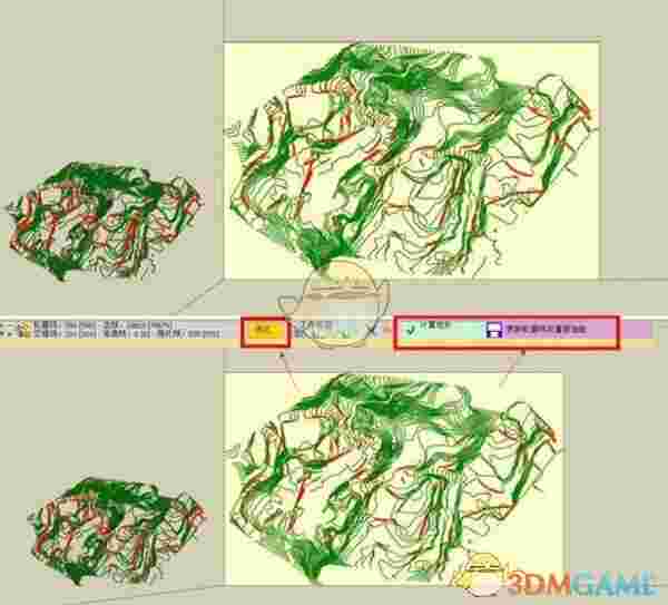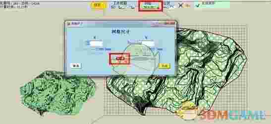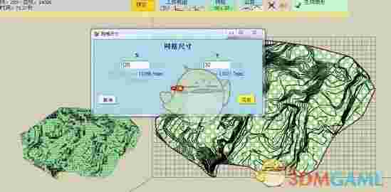 2、选择等高线方式时,它可在插件内部就对等高线进行各种优化处理,包括自动连接断开的小蓄口,手动连接断线可自动对线型优化,可即时预览生成三维地形,还可自由调整单位网格大小,以控制最终生成地形的精度。